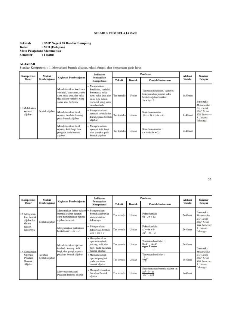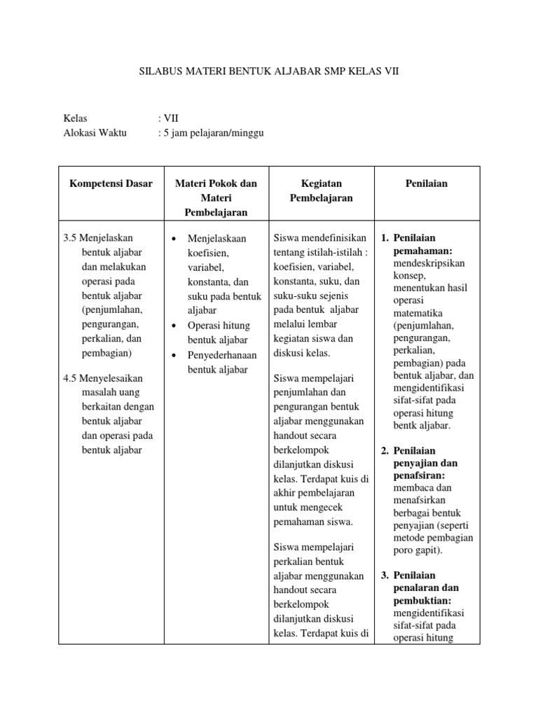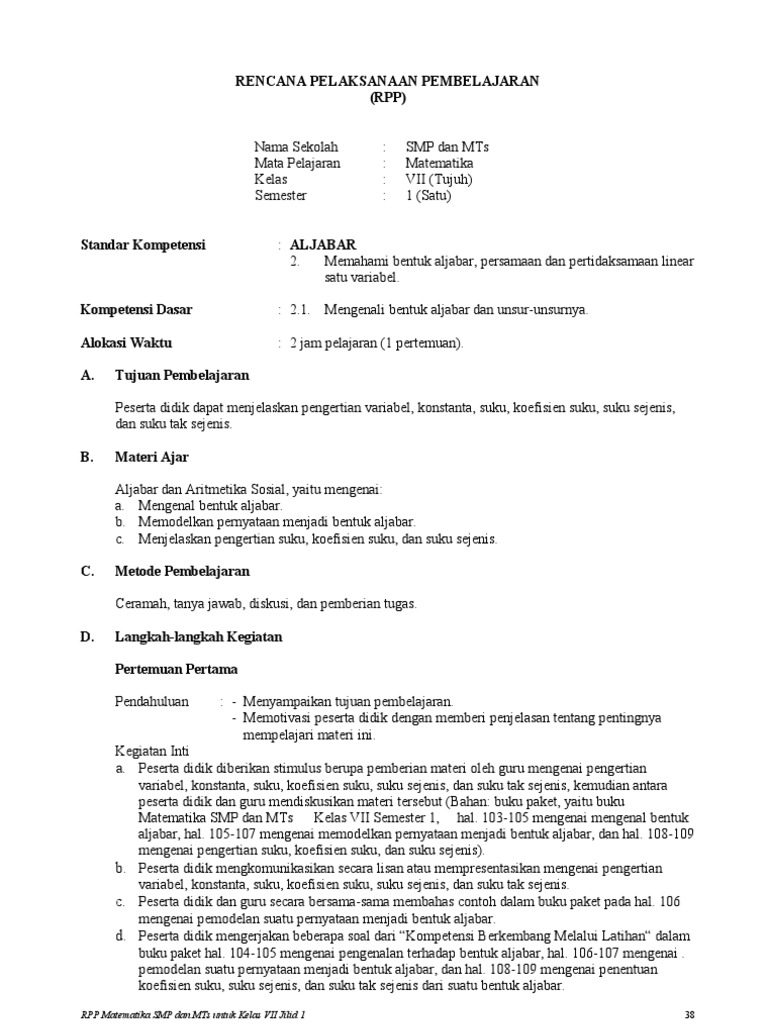Rpp Bentuk Aljabar Kelas 7 Kurikulum 2013 - Seputar Bentuk