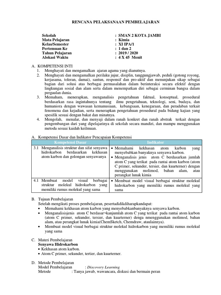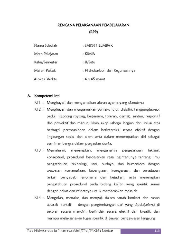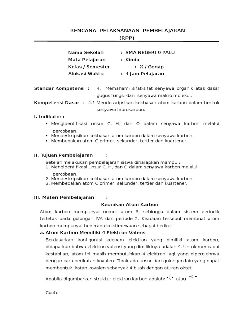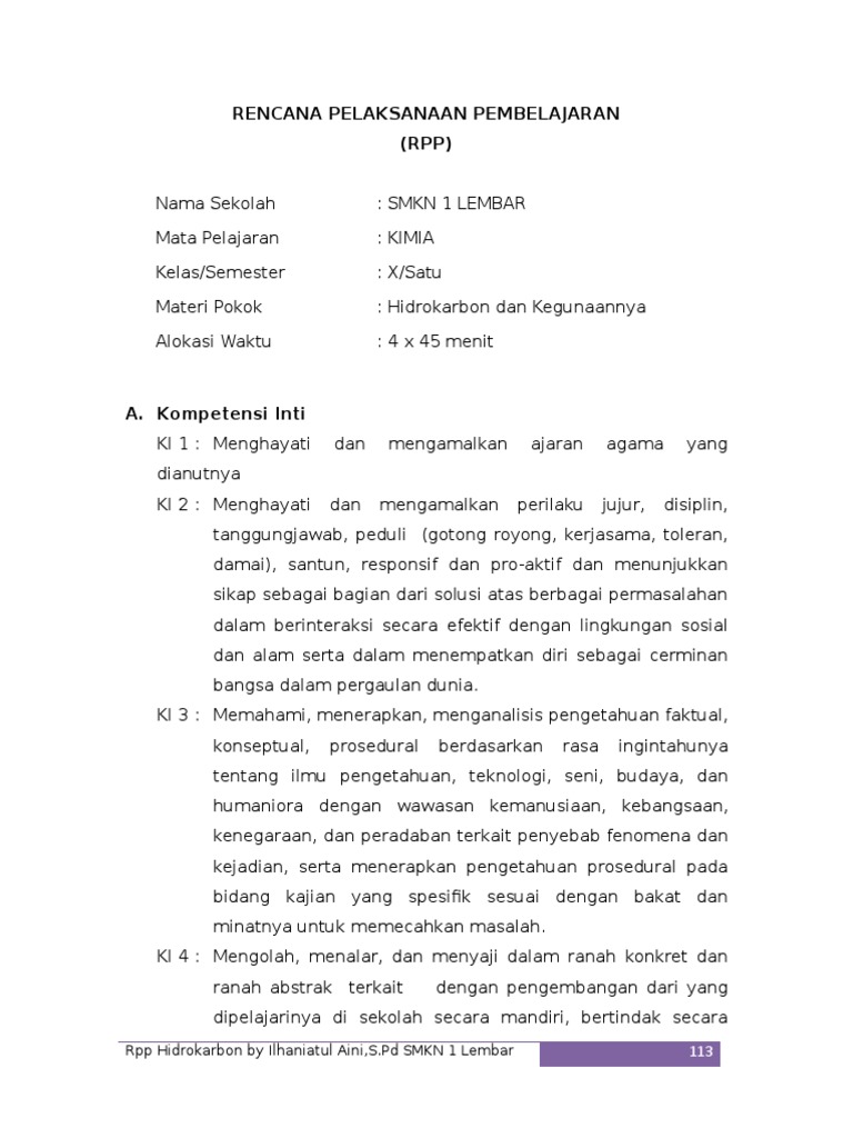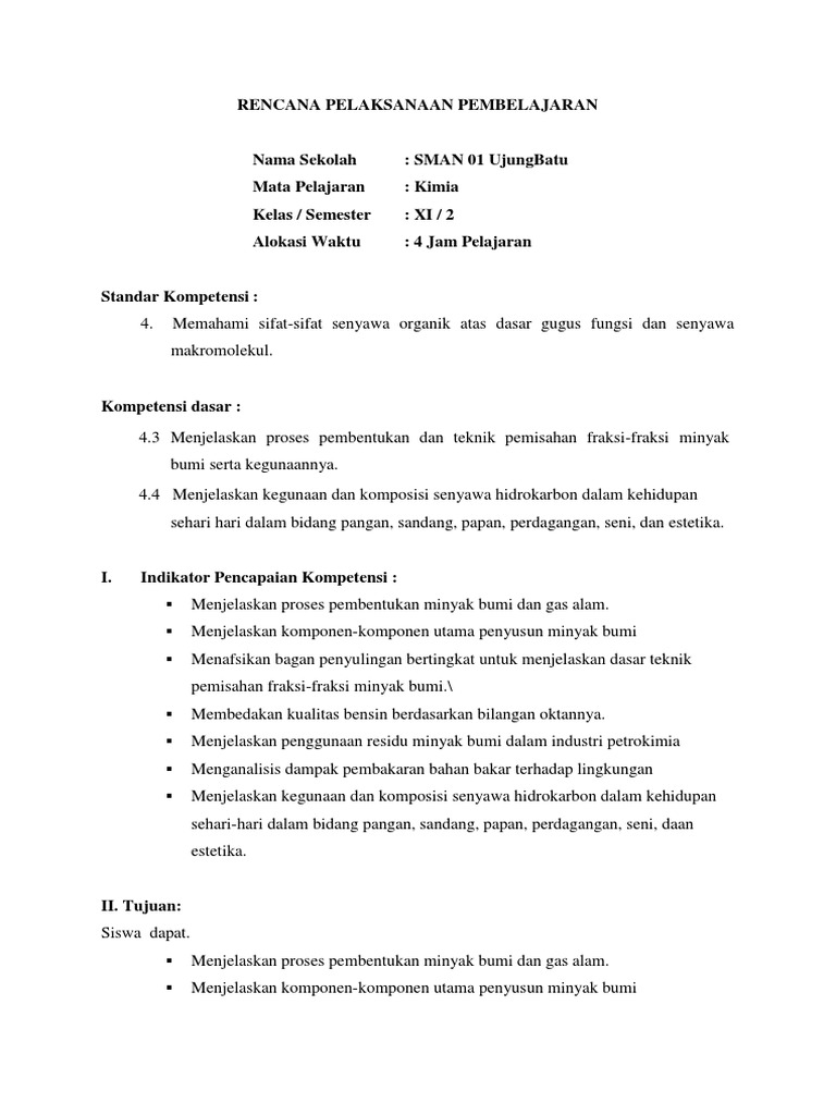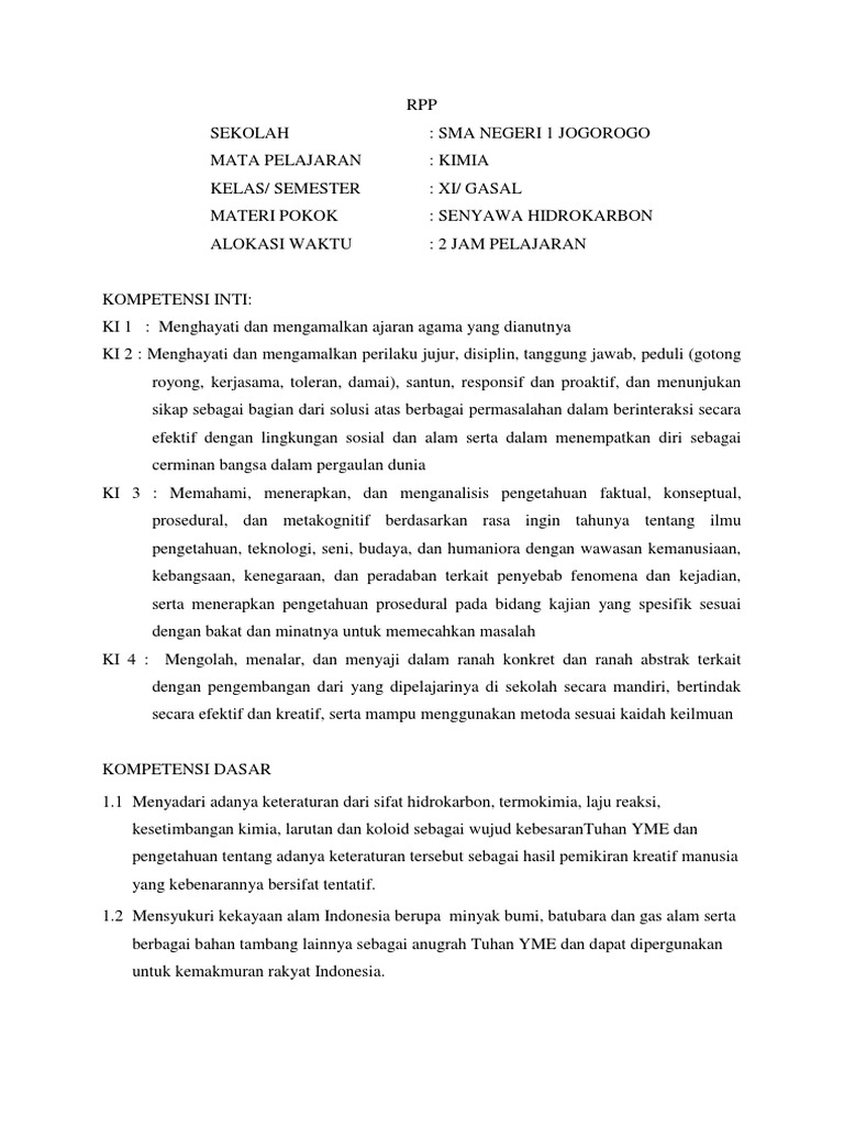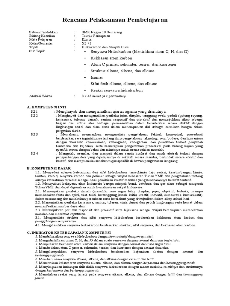DOC) RPP KIMIA MATERI HIDROKARBON REVISI | Reska Dastri - Academia.edu