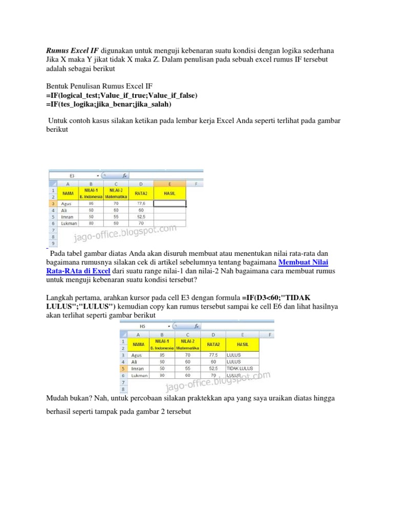 Rumus Excel if Digunakan Untuk Menguji Kebenaran Suatu Kondisi …