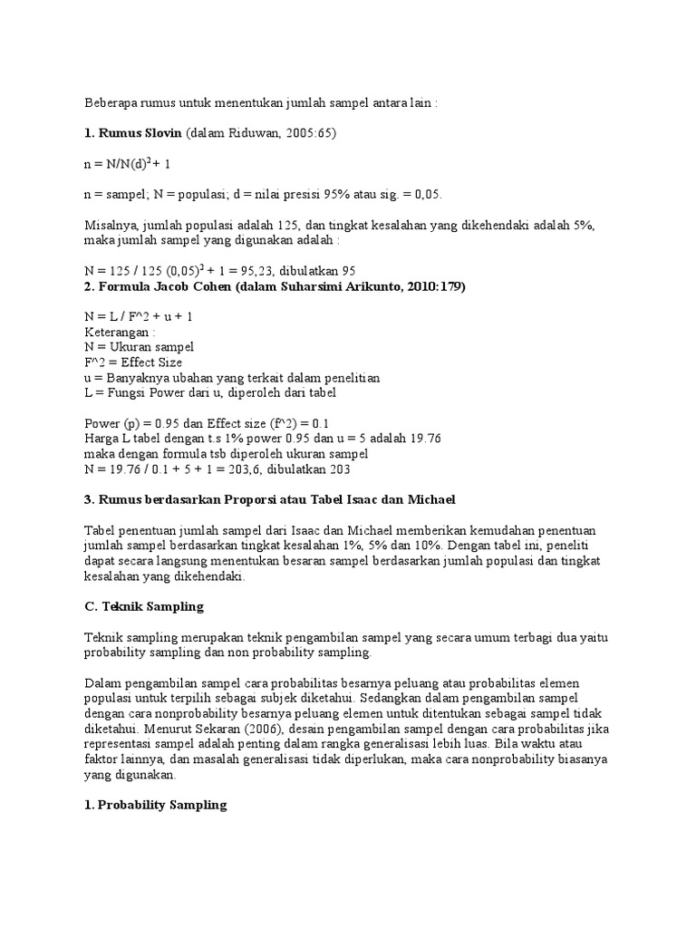 Materi Rumus Pengambilan Sampel Isaac And Michael Pdf