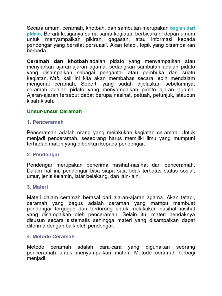 Pidato, Khotbah, Ceramah, Dan Sambutan