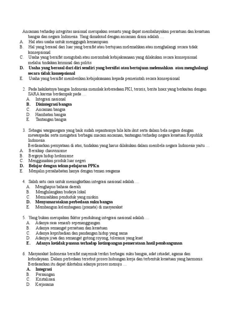10 Soal Essay Tentang Ancaman Terhadap Integrasi Nasional dan …