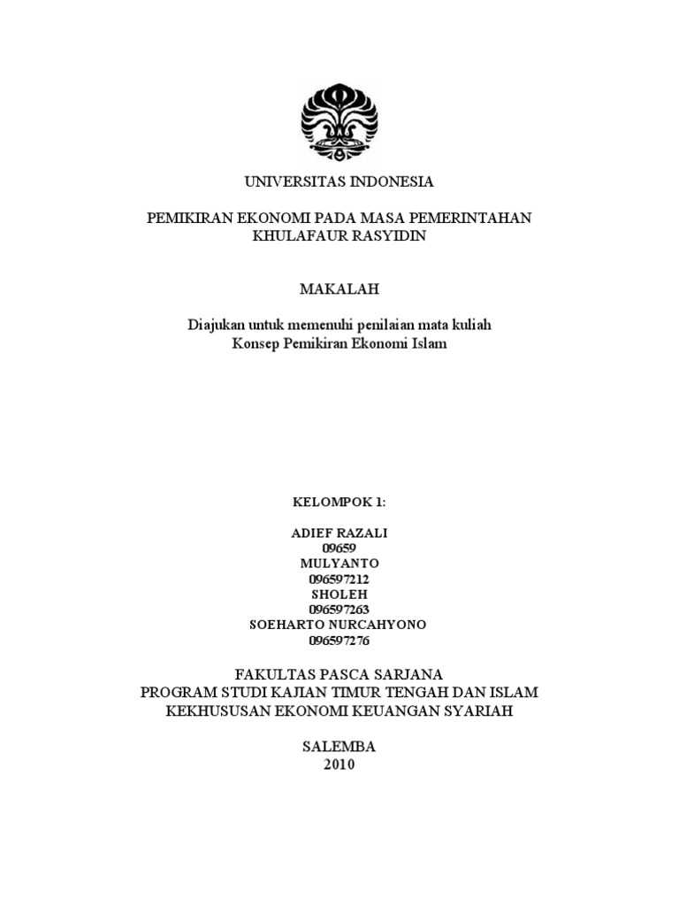 DOC) Makalah Pemikiran Ekonomi Khulafaurrasyidin | Ria Rosdiyana Dewi - Academia.edu