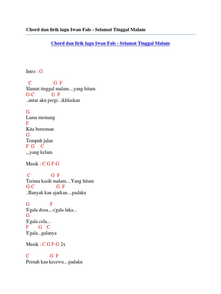 Selamat malam pencari chord Selamat… - Chord / kunci gitar musik …