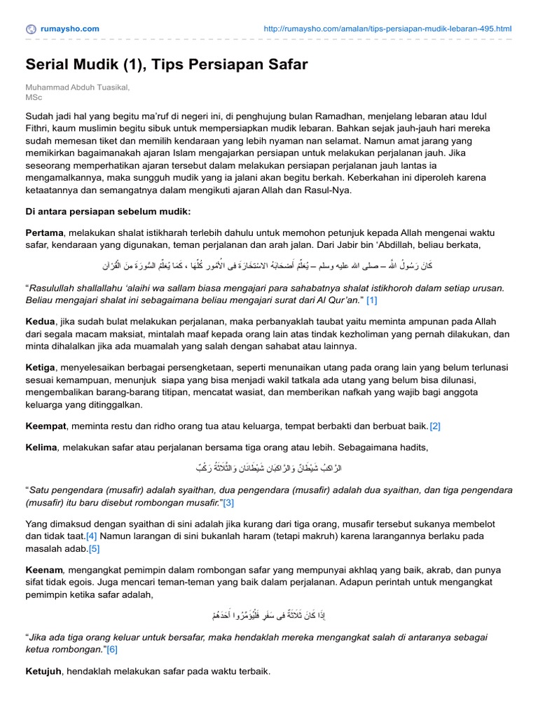 Tuntunan Safar Dalam Islam (Fiqh Safar - Bekal Mudik) Dari …