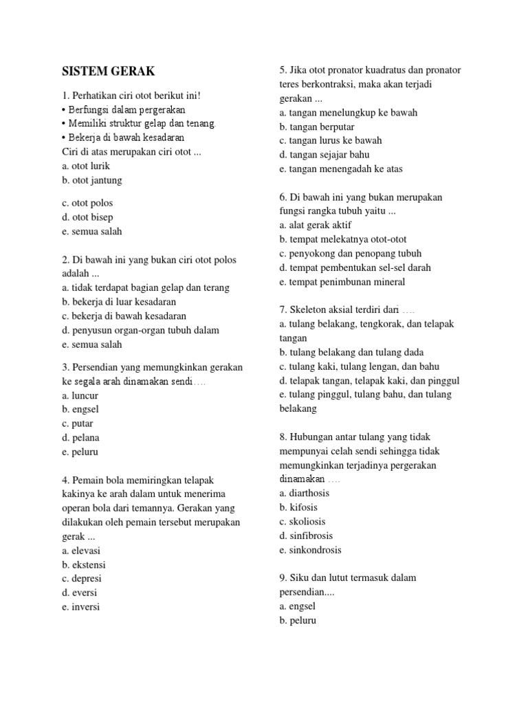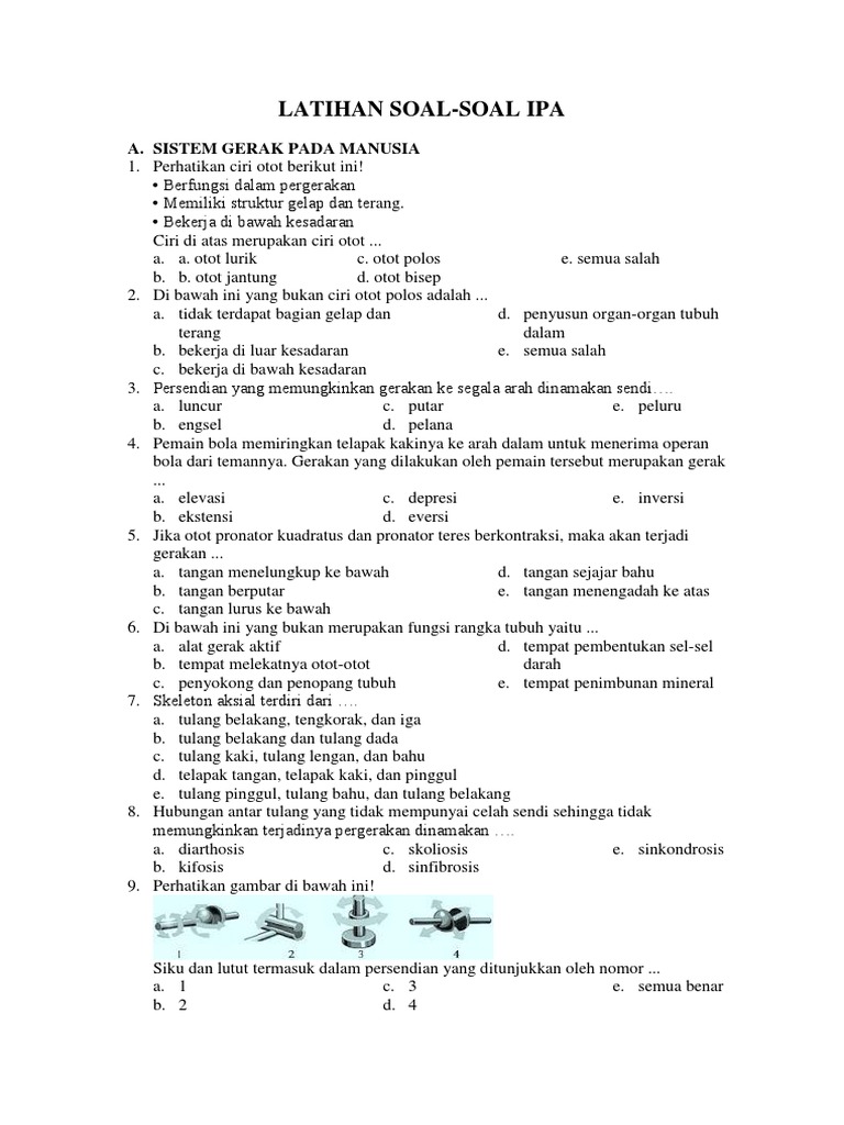 Latihan UTS IPA_Sistem Gerak pada Manusia kelas VIII