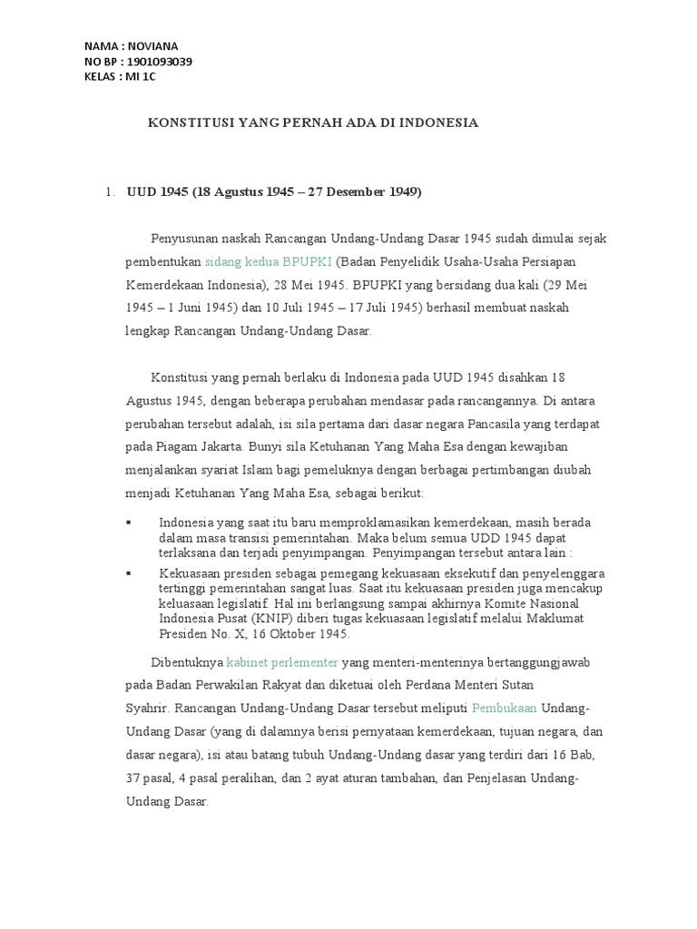 Konstitusi Yang Pertama Di Indonesia Adalah