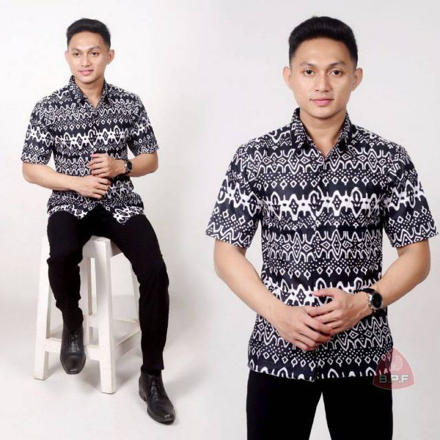 Jual Alisan Alisan Kemeja Batik Lengan Pendek Hitam Putih Original …