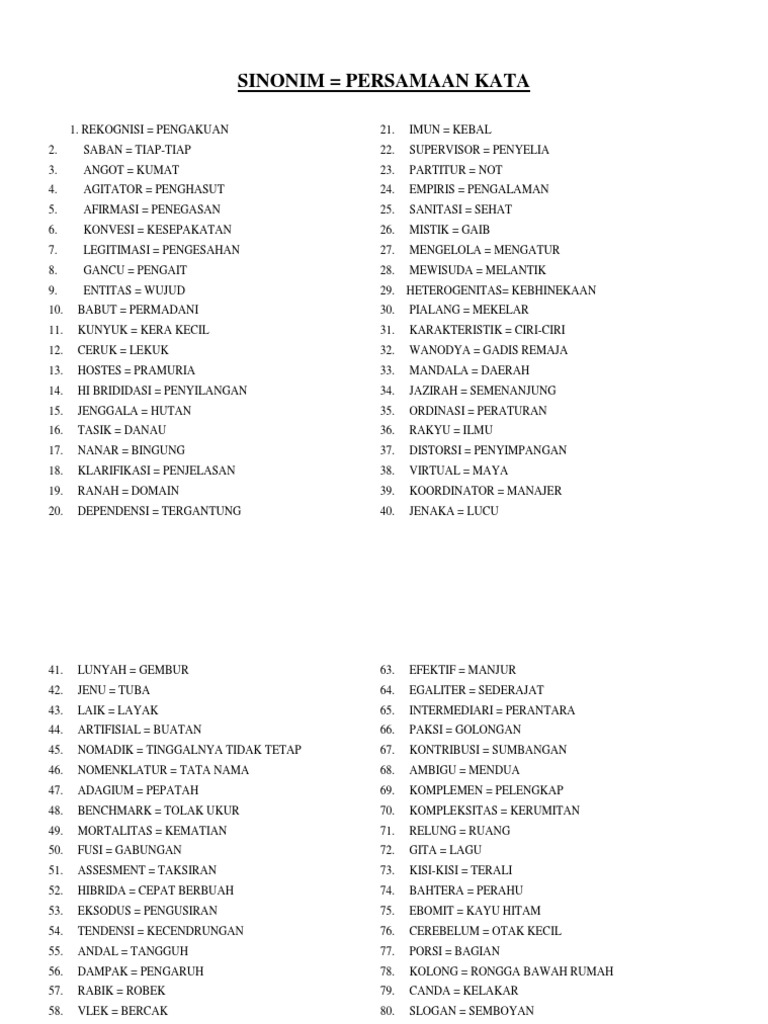 Sinonim (Persamaan Kata) Flashcards | Quizlet