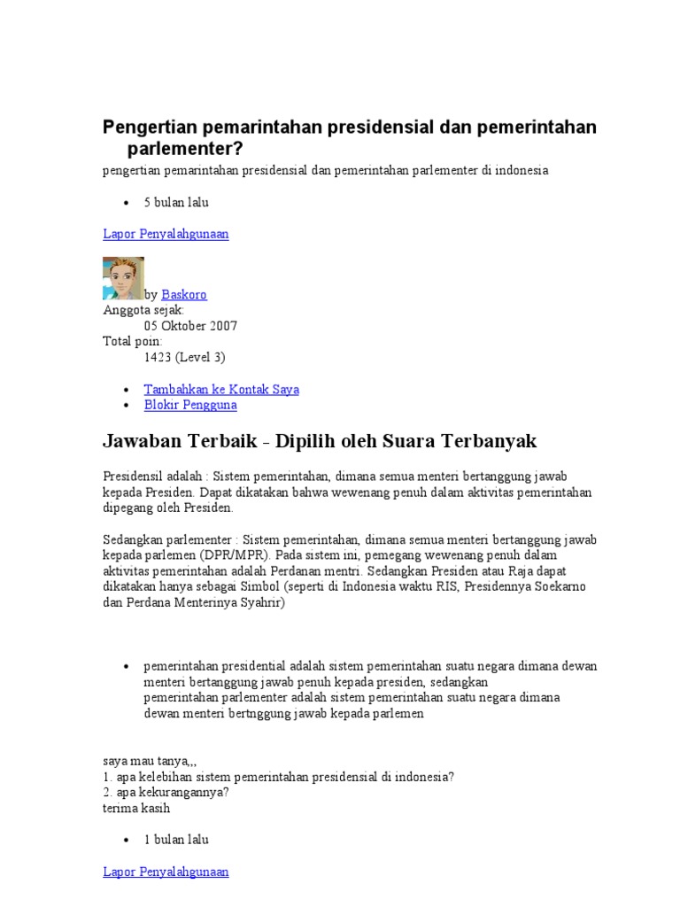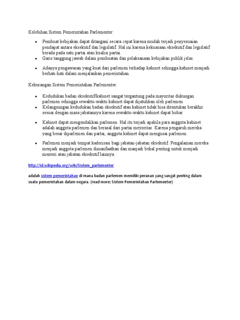 DOC) SISTEM PEMERINTAHAN PARLEMENTER DAN | sri winarti - Academia.edu