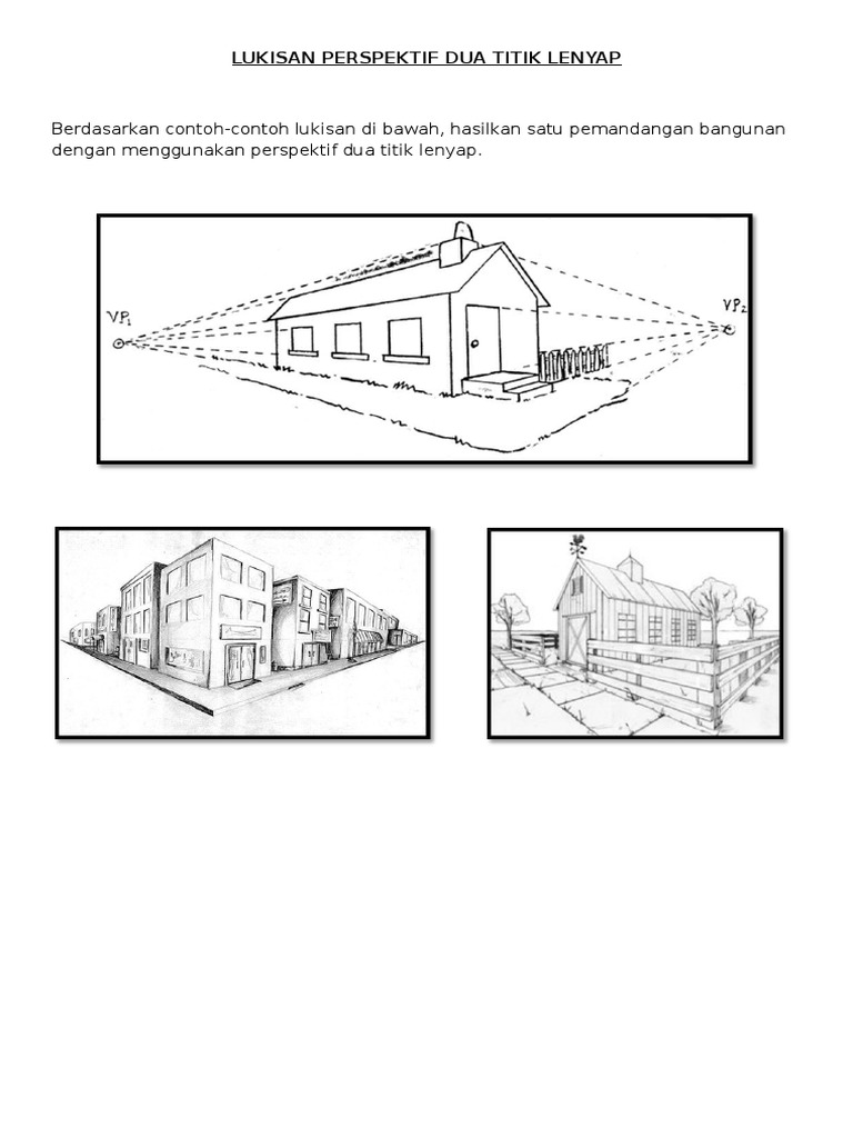 contoh gambar perspektif 2 titik hilang - Brainly.co.id