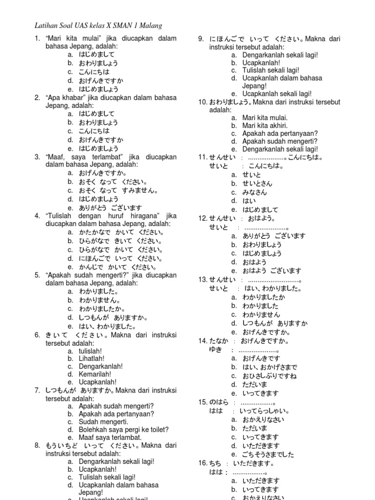 Contoh Soal Bahasa Jepang Kelas X Dan Jawabannya - Dapatkan Contoh