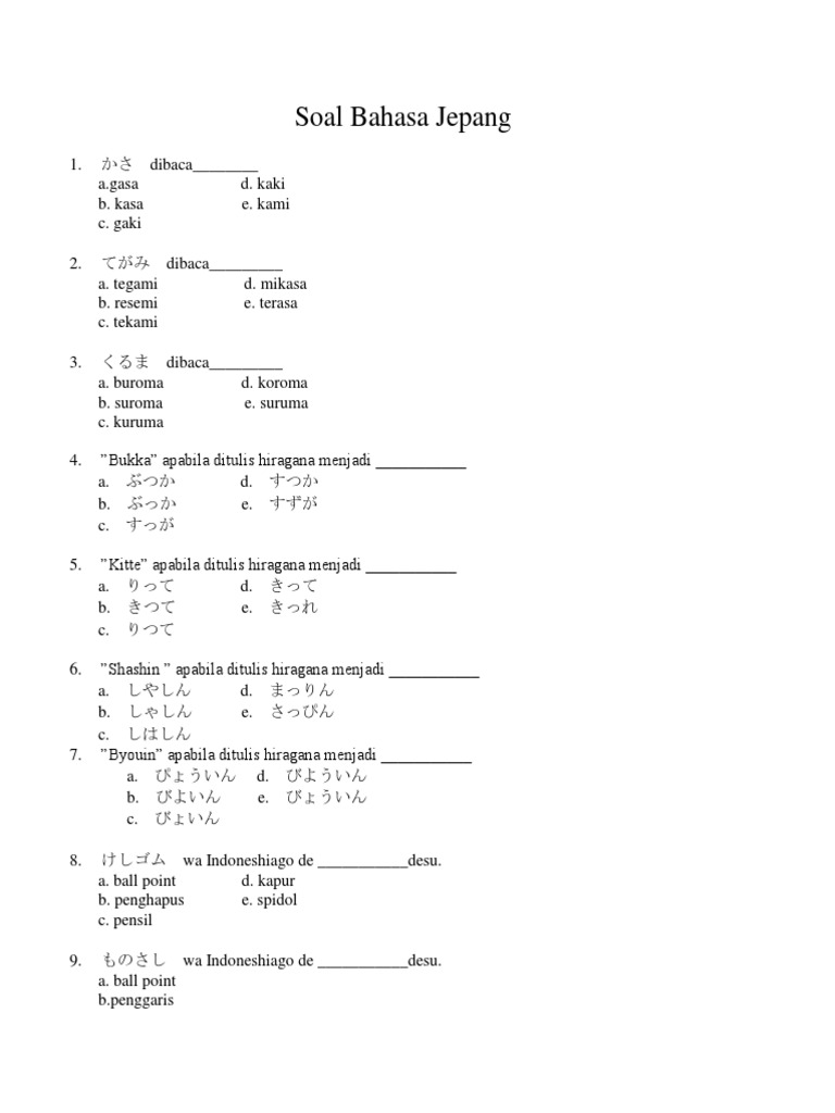 Contoh Soal Bahasa Jepang Dan Jawabannya A Sampai E - Kanal Jabar
