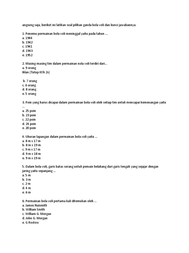 Soal Bola Voli Dan Jawabannya