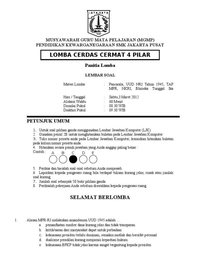 Soal Lomba Cerdas Cermat Sd Pdf - Ada Lomba