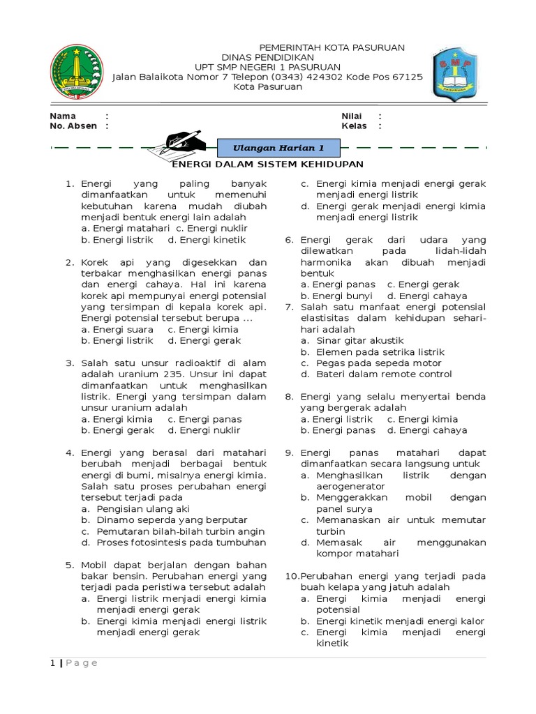 Contoh Soal Ulangan IPA Materi Energi dalam Sistem Kehidupan Kelas …