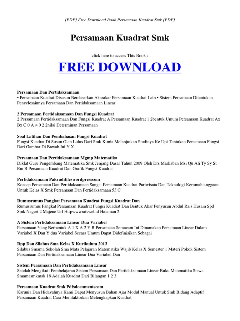 Soal Dan Pembahasan Persamaan Kuadrat Pdf