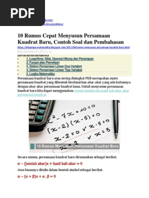 10 Rumus Cepat Menyusun Persamaan Kuadrat Baru, Contoh Soal dan …