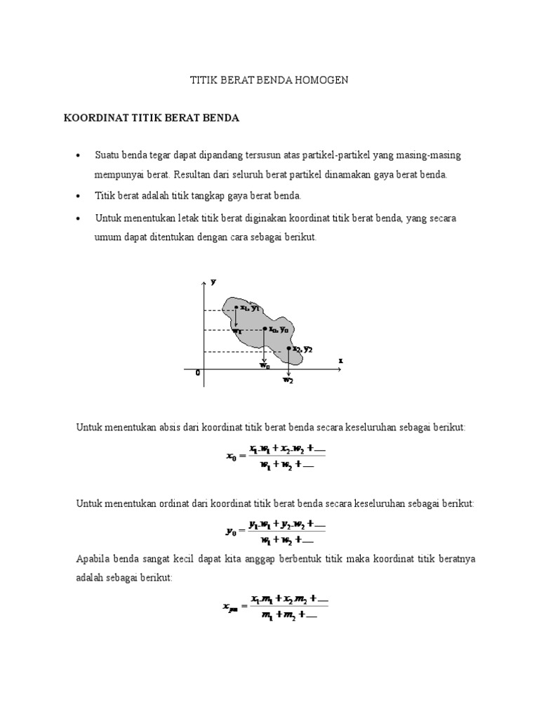 titik berat fix.pdf - TITIK BERAT a Titik berat benda homogen satu dimensi(garis Untuk benda-benda berbentuk memanjang seperti kawat massa benda | Course Hero