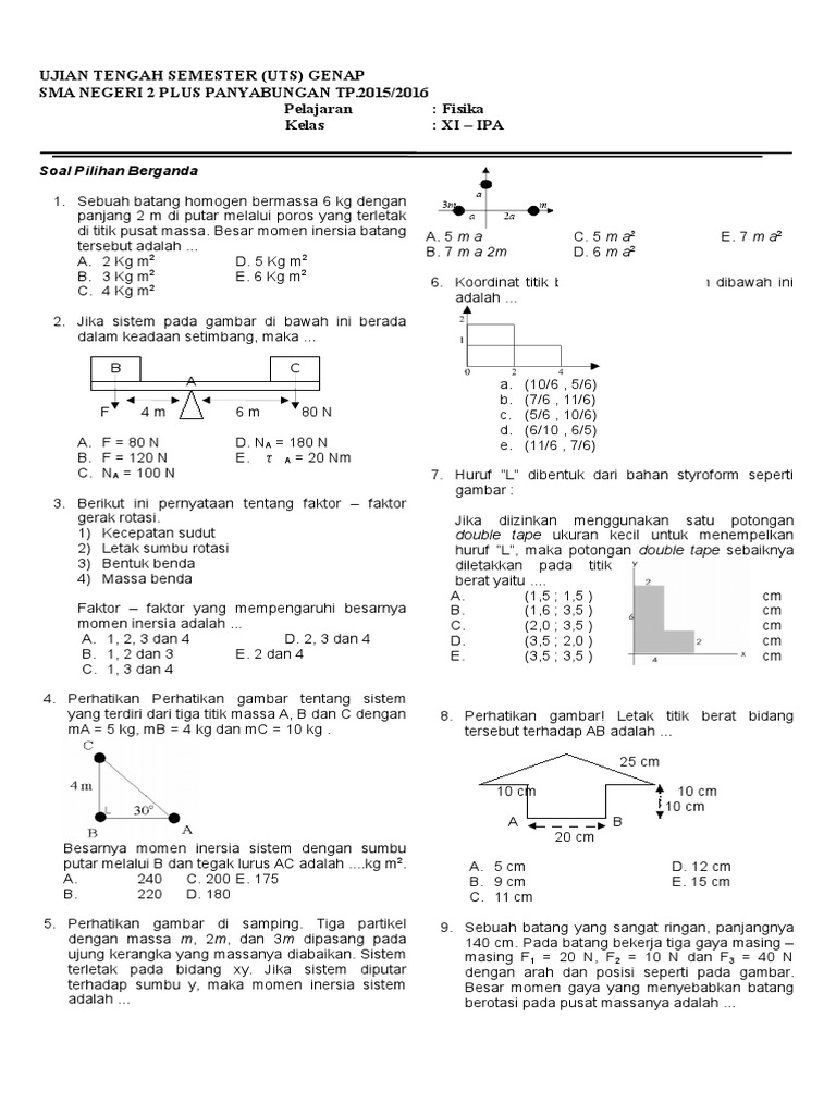 Home.docx - Home � Bank Soal � Fisika Kelas XI � SMA � Kumpulan Soal Titik Berat Benda Lengkap dengan Pembahasannya Kumpulan Soal Titik Berat Benda | Course Hero