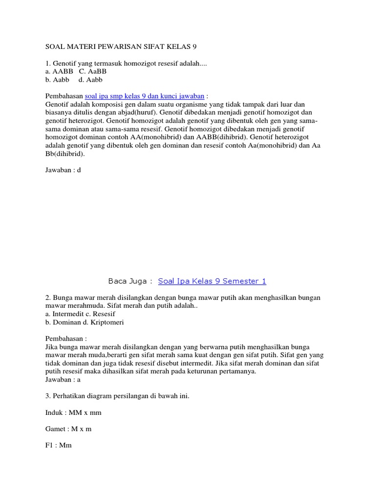 Contoh Soal Pewarisan Sifat Kelas 9 Dan Jawabannya - Contoh Soal …