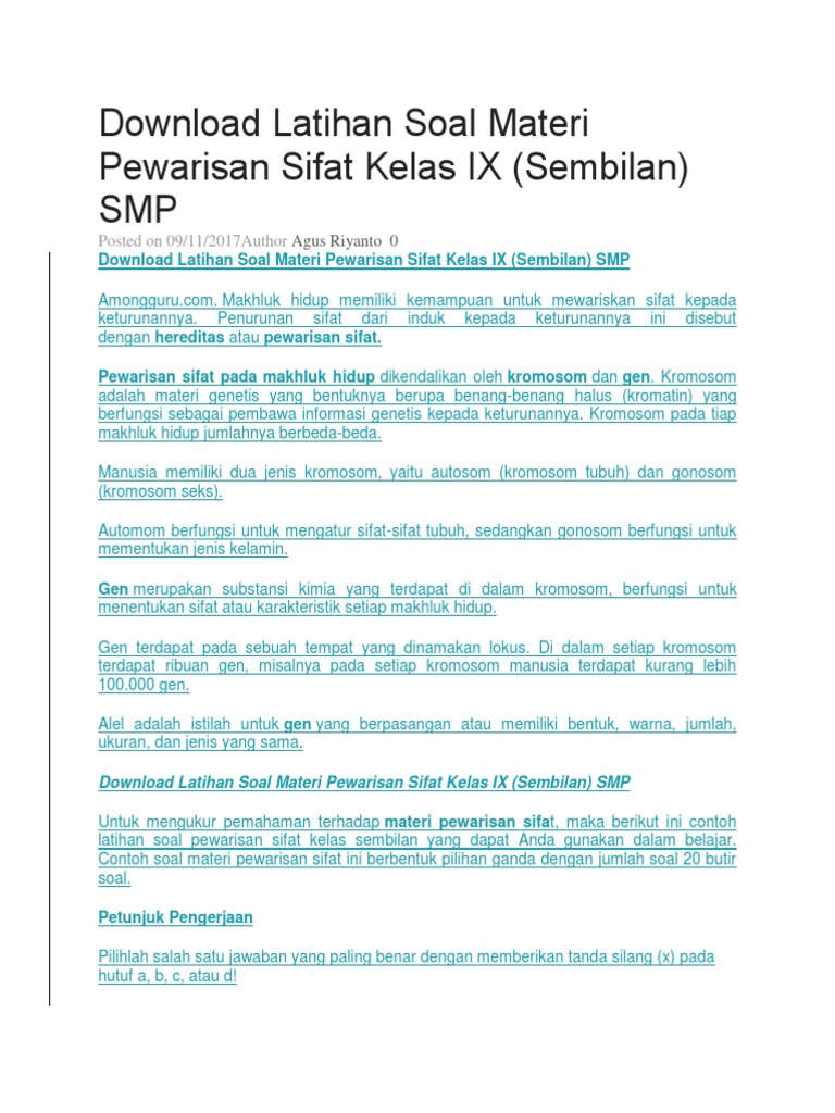 Soal Materi Pewarisan Sifat, Kelas IX SMP - Info Pendidikan dan …