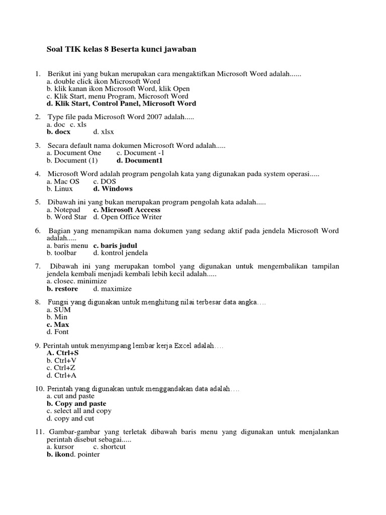 Soal Pilihan Ganda Microsoft Word Dan Kunci Jawaban - Guru Galeri