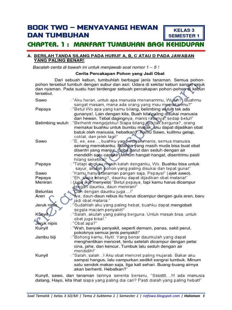 Download Soal Tematik Kelas 3 SD/MI Semester 1 Kurikulum 2013 …