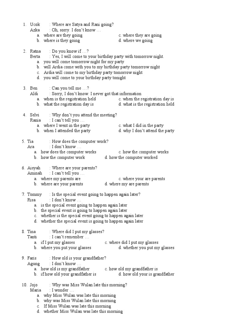 Soal Pilihan Ganda Noun Clauses Dengan Kunci Jawaban //FREE …