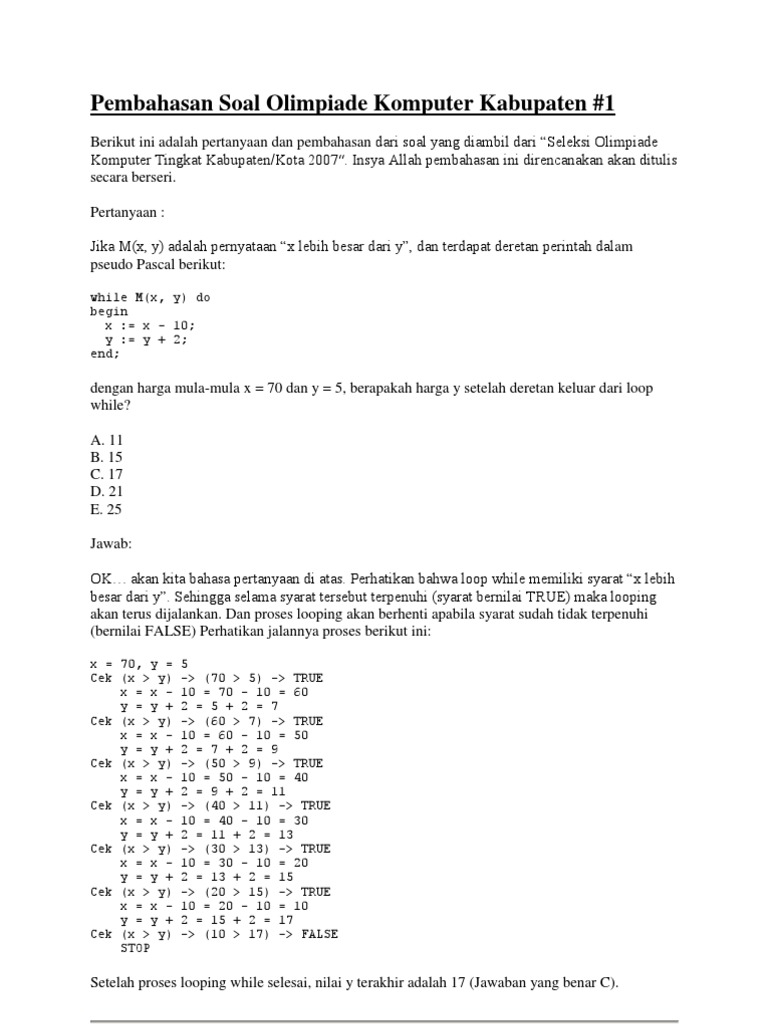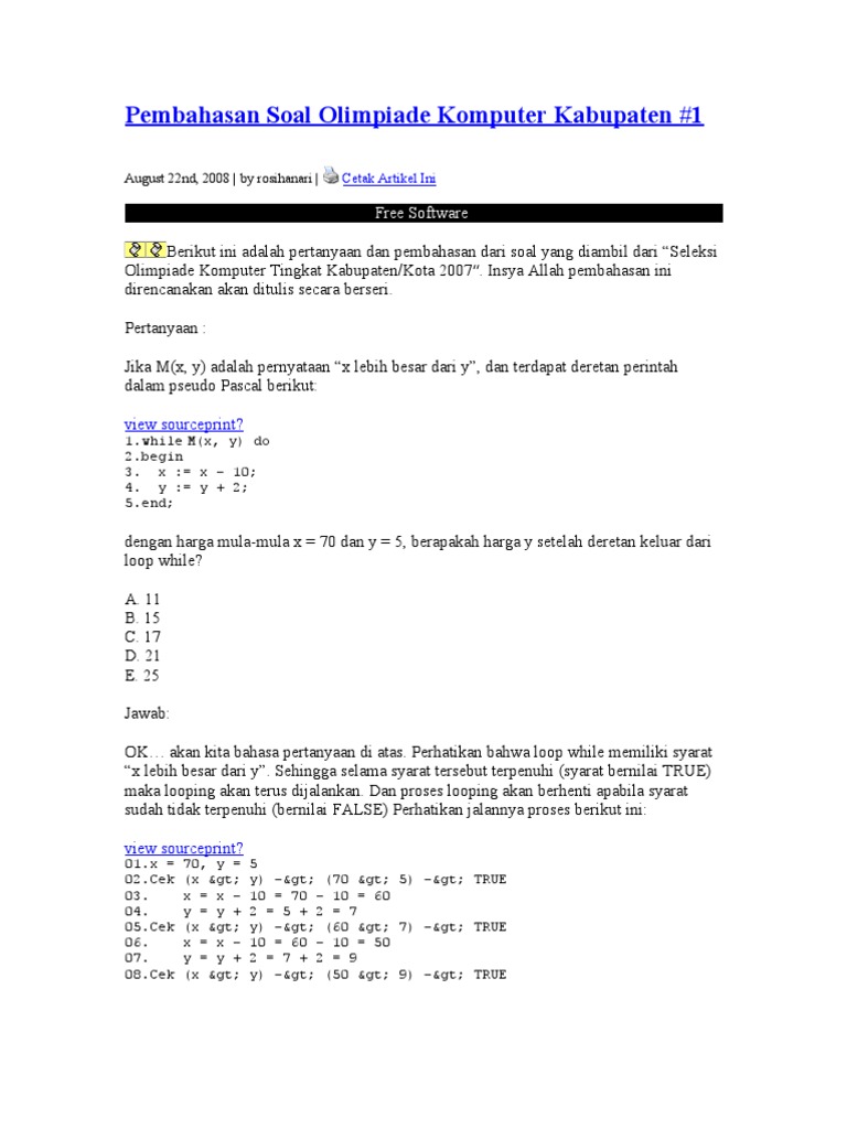 Pembahasan Soal Olimpiade Komputer Sma Tingkat Kabupaten - crimsonjam