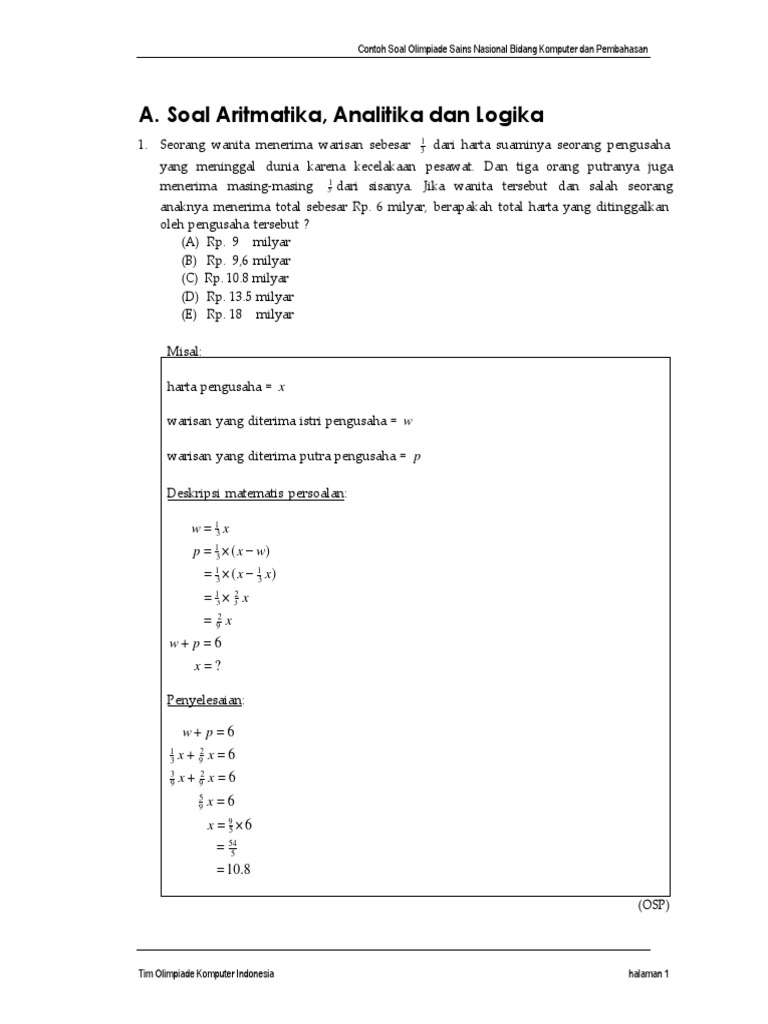 Contoh Soal Olimpiade Sains Nasional Bidang Komputer Dan …
