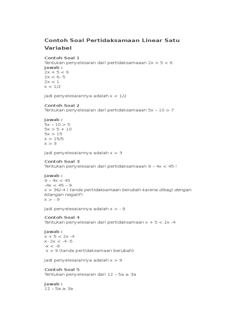Contoh Soal Pertidaksamaan Linear Satu Variabel Dan Pembahasannya …