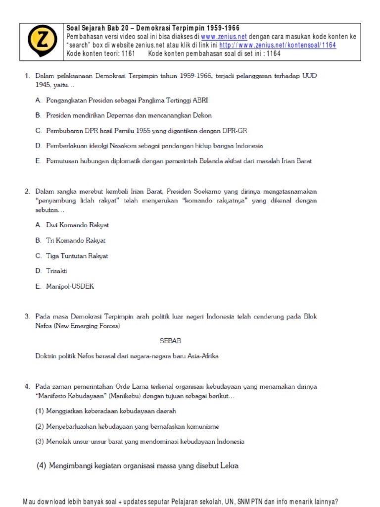 Soal Pilihan Ganda Dan Jawaban Tentang Demokrasi Terpimpin - Kemendikbud