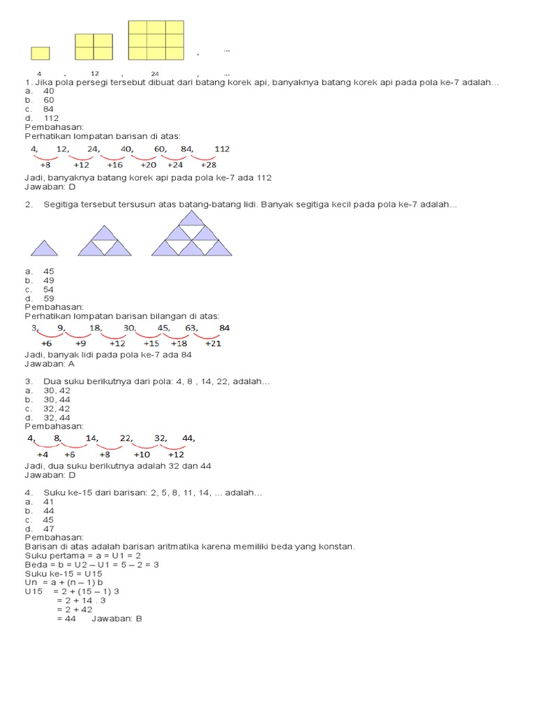 Ilmu Pengetahuan 10: Contoh Soal Pola Bilangan Kelas 8 Dan Pembahasannya Doc