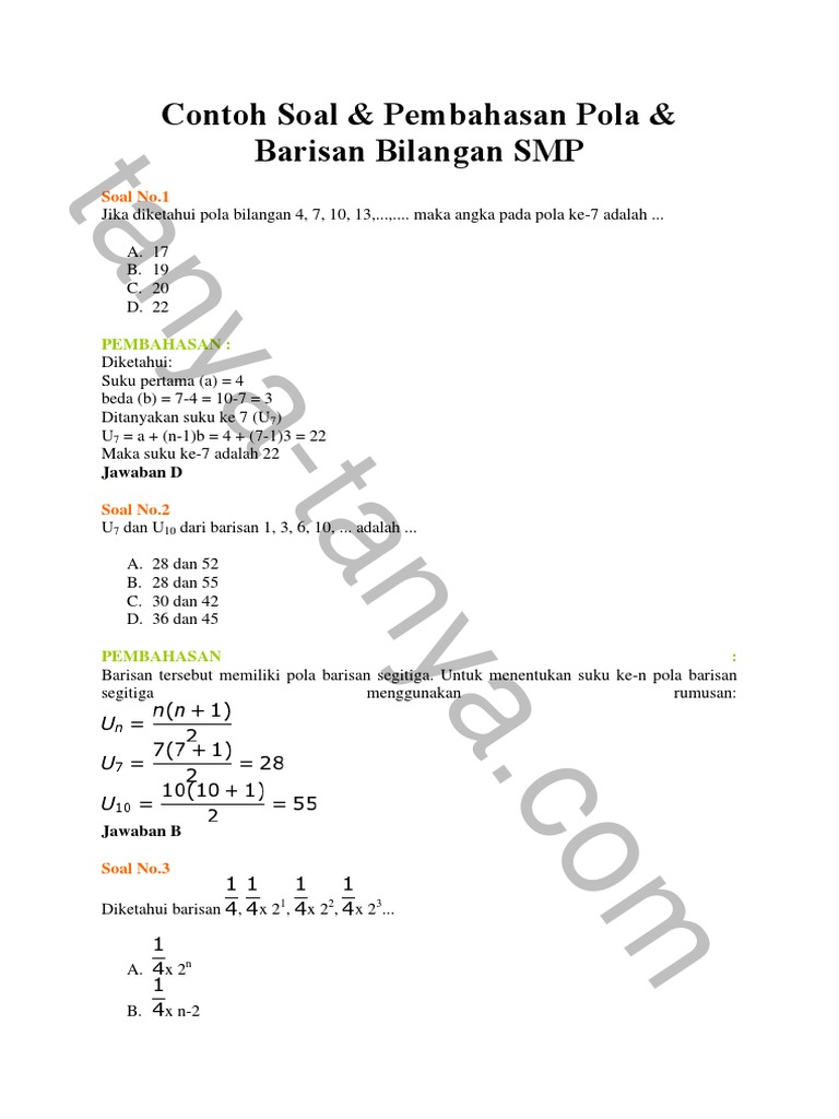 Soal Pola Bilangan Smp Kelas 7 Dan Pembahasannya