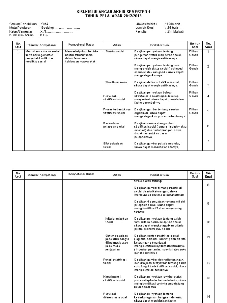 Kisi Kisi Soal Sosiologi Kelas X Semester Genap 1 Soal UAS …