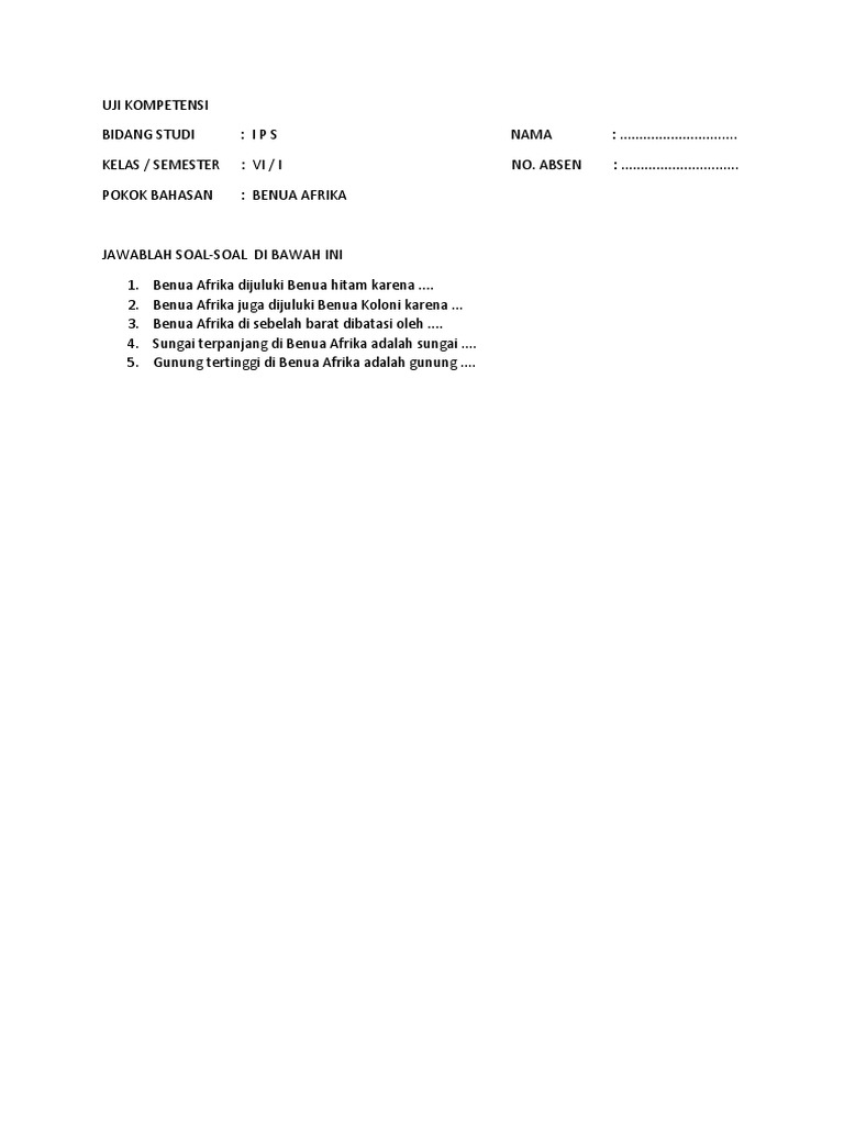 buatlah soal tentang benua afrika 10 soal besera jawabannya …