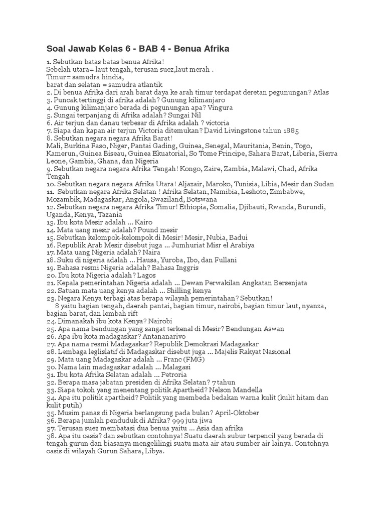 Soal Jawab Kelas 6 - BAB 4 - Benua Afrika