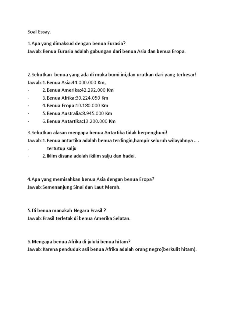45 Soal - Jawaban IPS Bab Benua dan Samudra (Pilgan, Essai …
