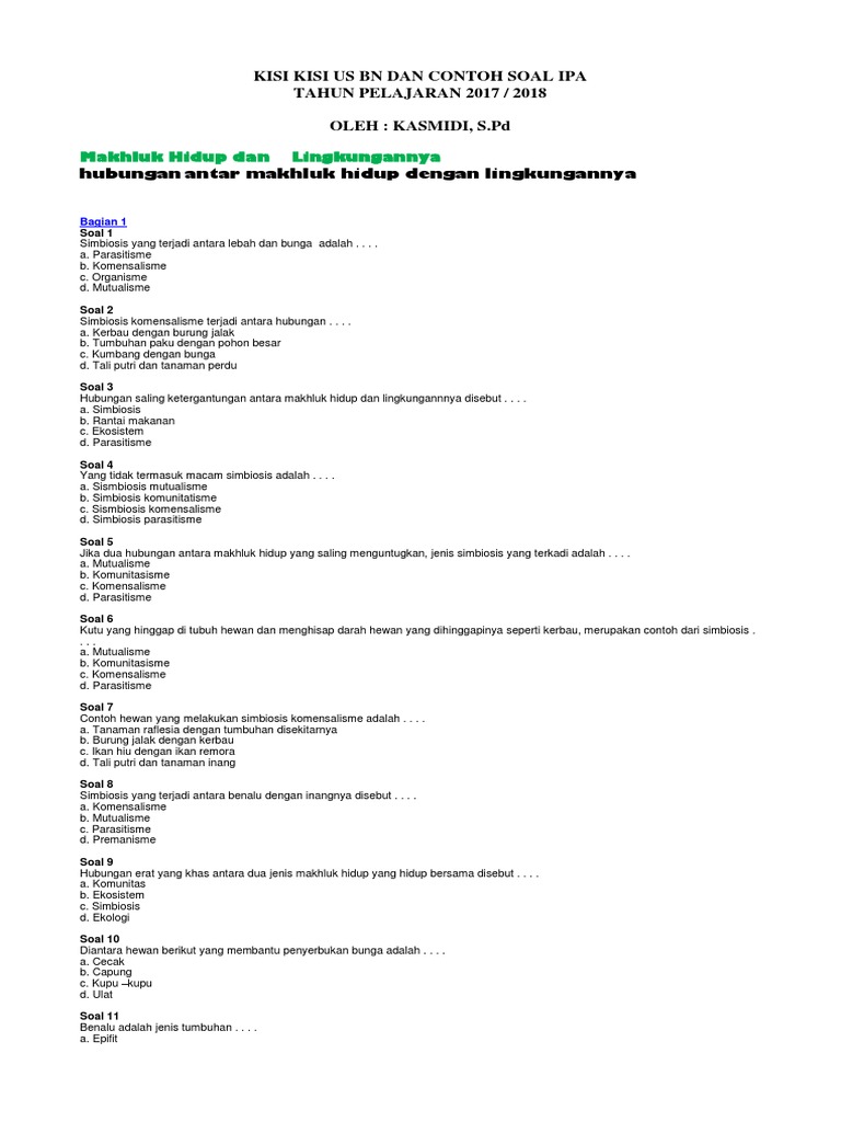SIMBIOSIS - SOAL DAN PEMBAHASAN USBN IPA KISI-KISI TERBARU #1 …