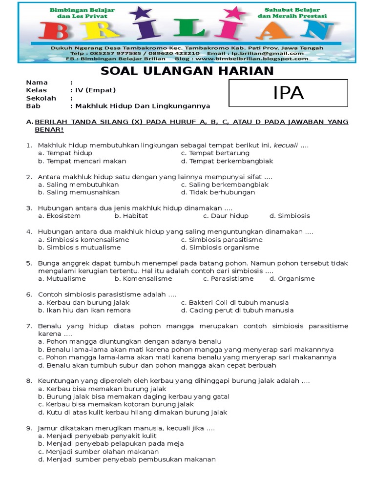 Contoh Soal Hubungan Antar Makhluk Hidup dengan Lingkungannya …