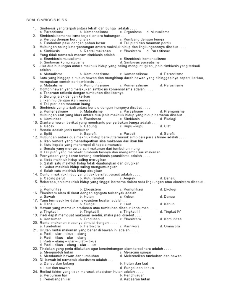 45 Soal Pilihan Ganda tentang Simbiosis dan Jawabanya + Essay …