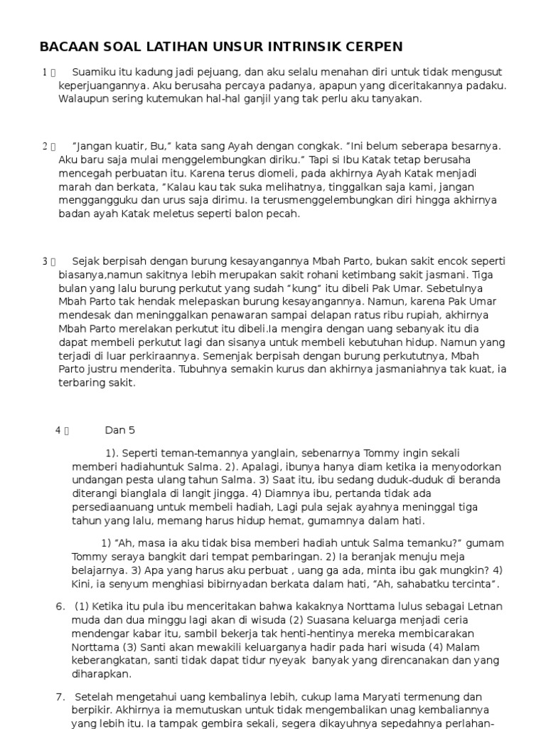 Contoh Soal Cos Dan Jawaban Unsur Instrisik Cerpen - Bali Teacher