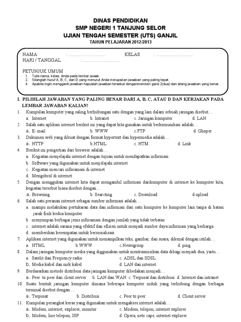 Soal Uts Tik Kelas 9 Semester 1 Dan Kunci Jawaban - Guru Galeri