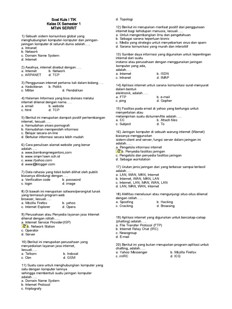 Soal Tik Kelas 9 Semester 1 Dan Kunci Jawaban 2018 – IlmuSosial.id