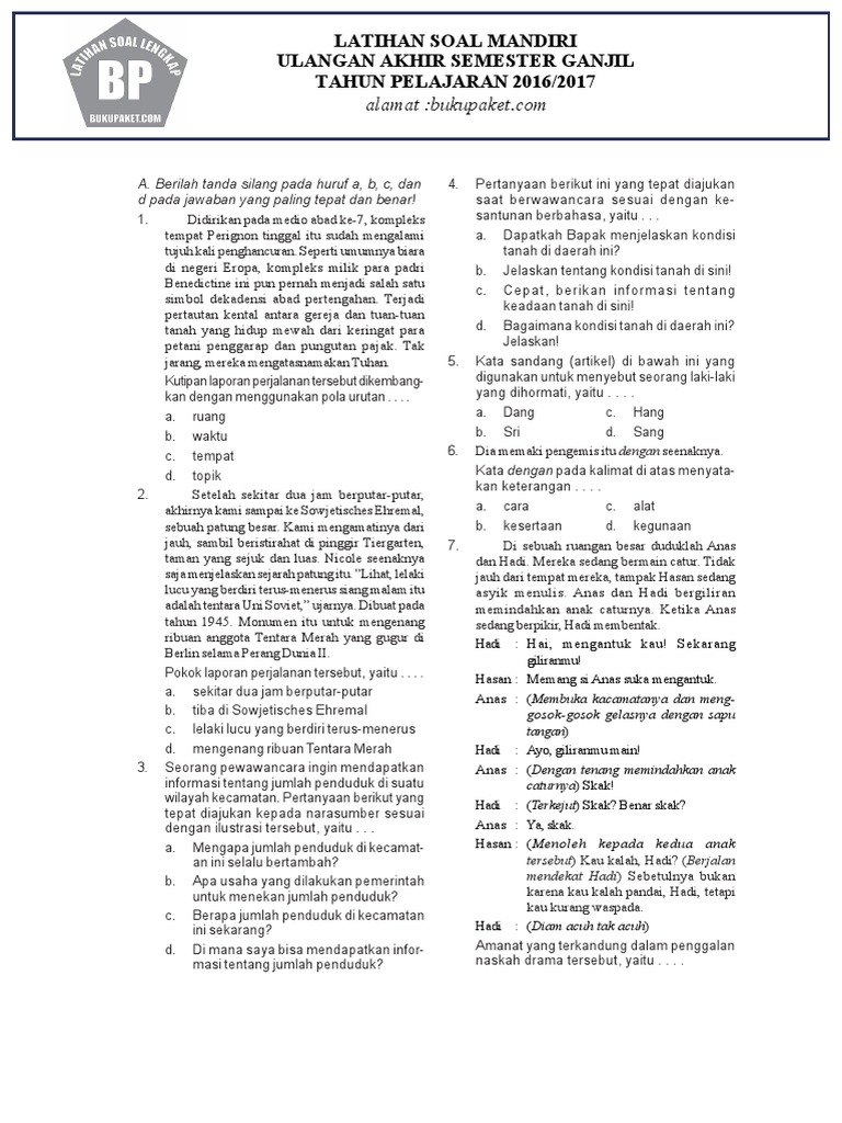 Soal Uas Bahasa Indonesia Kelas 8 Semester 1 Dan Jawabannya - Dunia Sekolah ID