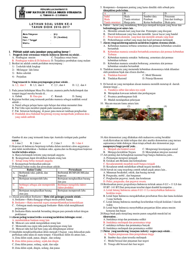 Contoh Soal USBN IPS SMP/MTs Kurikulum 2013 Tahun 2019 | Contoh …