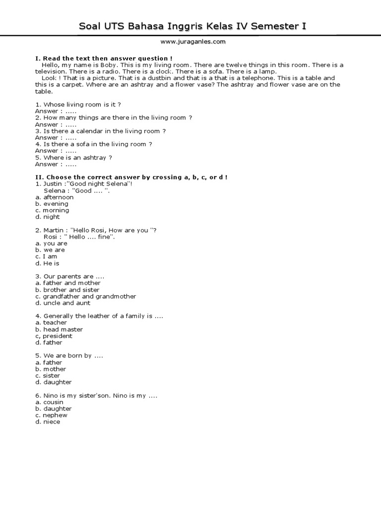 Soal UTS Bahasa Inggris Kelas 4 Semester 1 Terbaru Tahun 2018 …