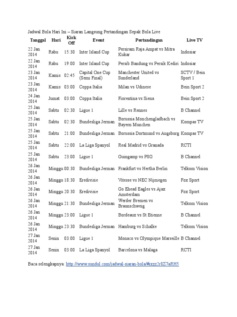 25 Indah Jadwal Bola Hari Ini - Gambar SepakBola