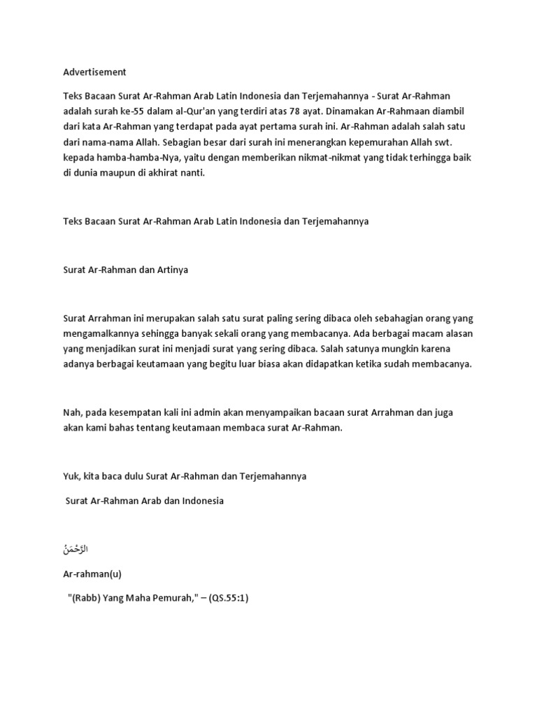Surat Ar Rahman Dan Terjemahan Pdf - Kumpulan Surat Penting